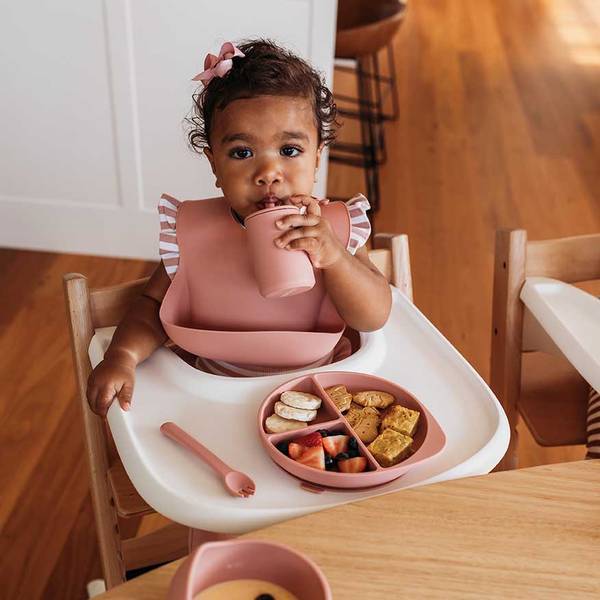 - Have everything ready before you start; your high chair should be in position, food prepared and in the bowl and your baby should have one of their cute baby bibs on.