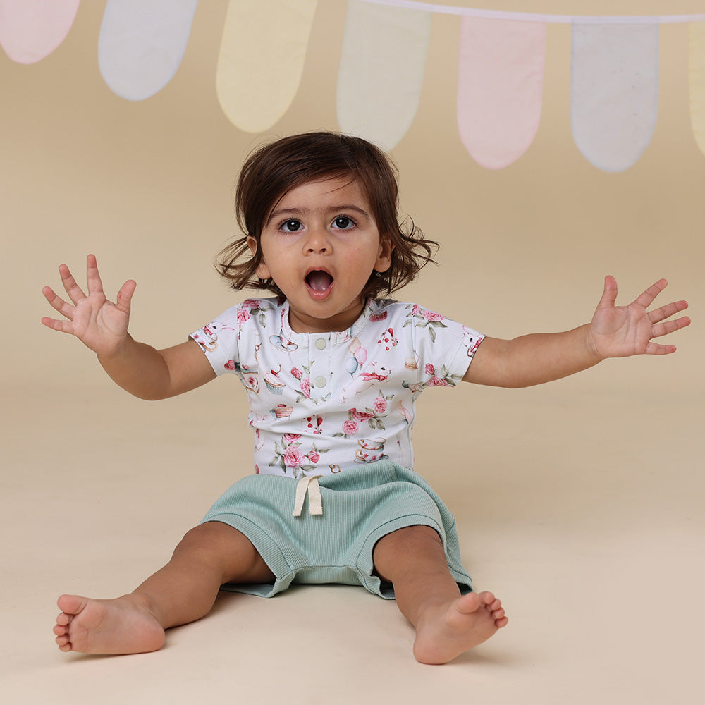 Snuggle Hunny organic sage shorts are made for babies and toddlers. They are practical whilst beingĀ very stylish and match beautifully with our fitted bodysuits and T-Shirts.