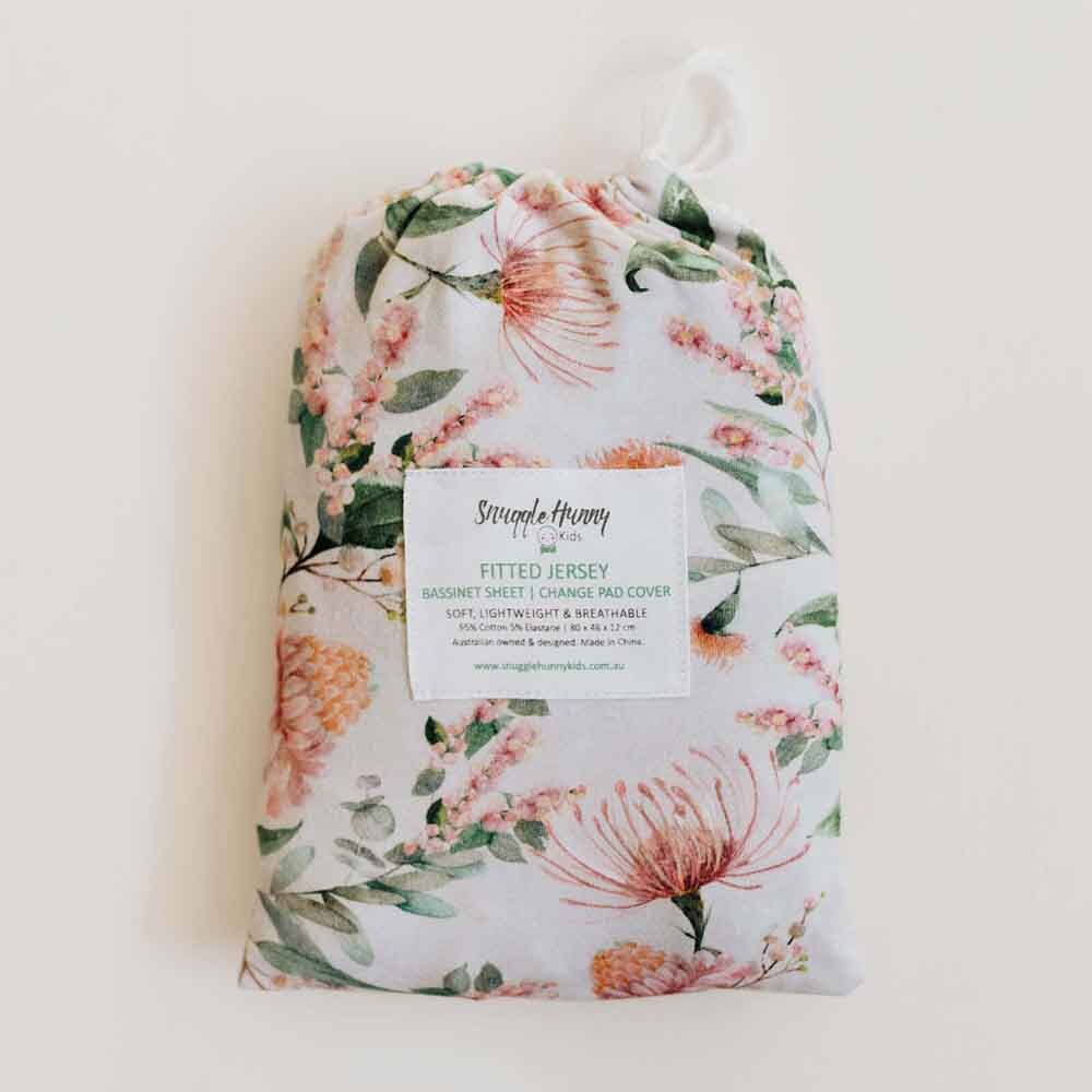This will launch Tuesday 25th Nov 7am AEDT. Snuggle Hunny Wattle Fitted Bassinet Sheet doubles as a Change Pad Cover and is made from snuggly soft stretch cotton jersey. It features our exclusive Snuggle Hunny Wattle print and comes in a matching drawstring bag.
